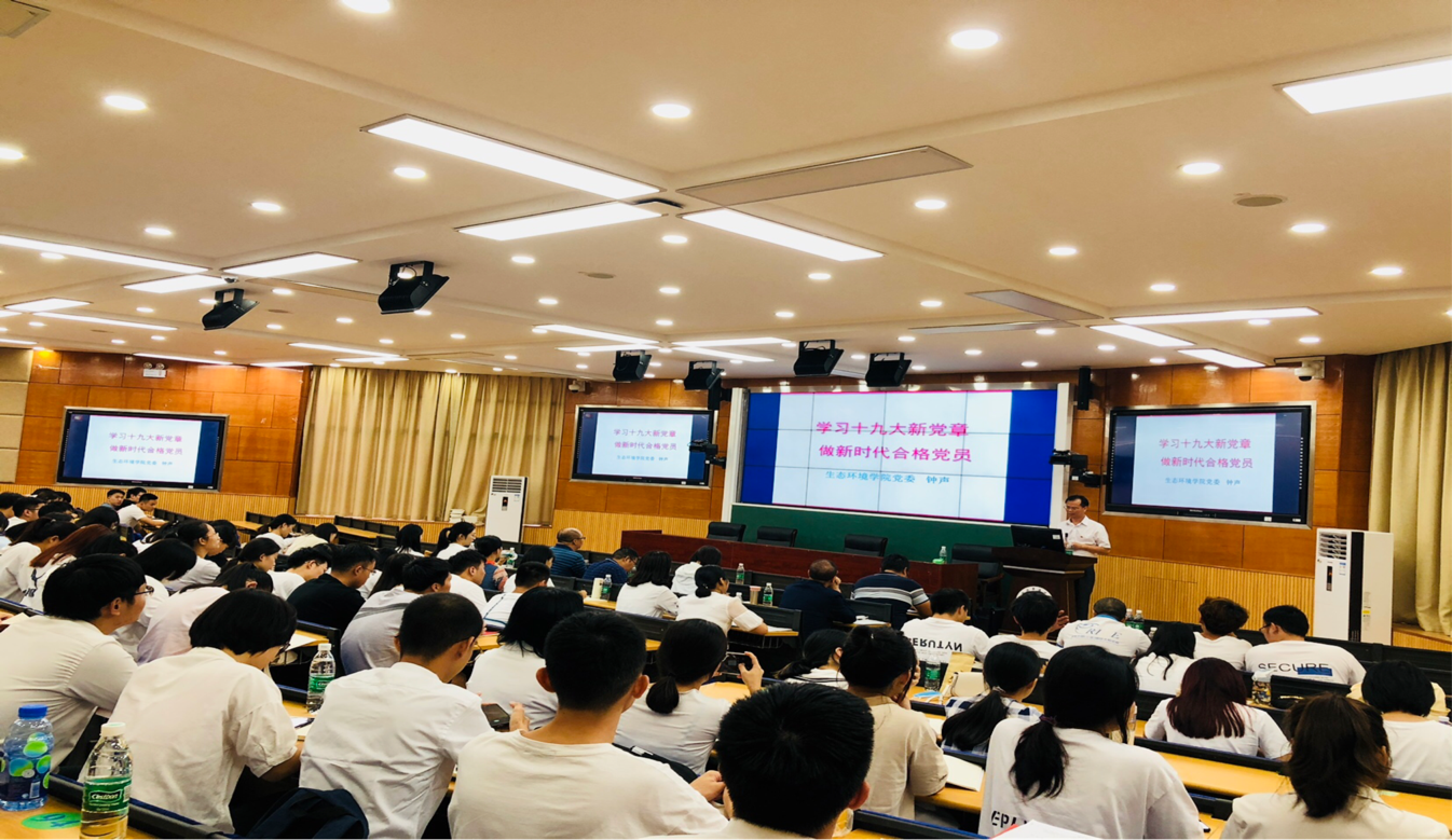 为深入学习贯彻习近平新时代中国特色社会主义思想,贯彻落实《2019-2023年全国党员教育培训工作规划》,10月22日下午,生态环境公司党委在3208智慧教室召开了专题党课教育培训,公司党委委员钟声副书记主持此次培训,党委委员徐功娣经理、史云峰副经理出席培训会,公司师生党员、入党积极分子参加培训会。