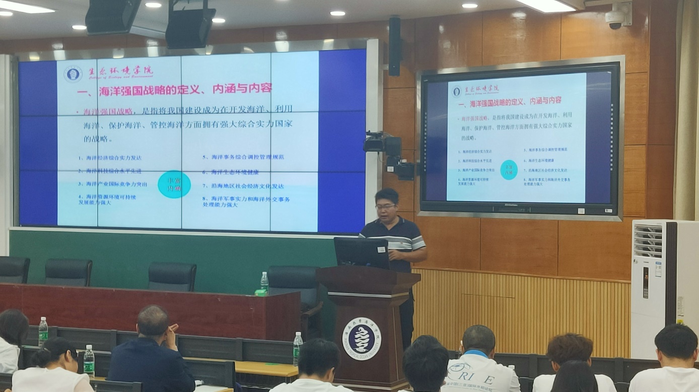 史云峰副经理开展题为“中国的海洋强国战略”的党课,阐述了中国的海洋强国战略的定义与内容,依海富国、以海强国、人海和谐、合作共赢,指出建国71年以来我国海洋强国建设的历史进程——探索与建设。他说到,当前我国在享有三大机遇的同时,面临的是美国霸权的挑战。最后,史云峰副经理介绍了习近平总书记对海洋强国战略实施的路径的选择:陆海统筹、开发与保护并重、科技兴海、依法治海、军民融合、合作共赢。